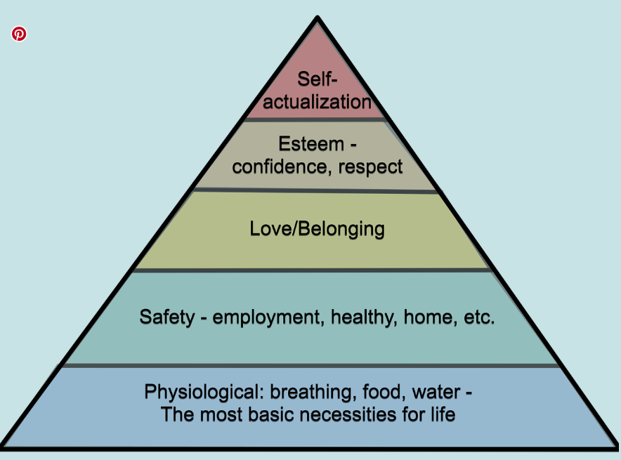 The top of what pyramid? You might be thinking. Well, if you've read my earlier posts, I mentioned Maslow's Hierarchy of Needs (see image below).